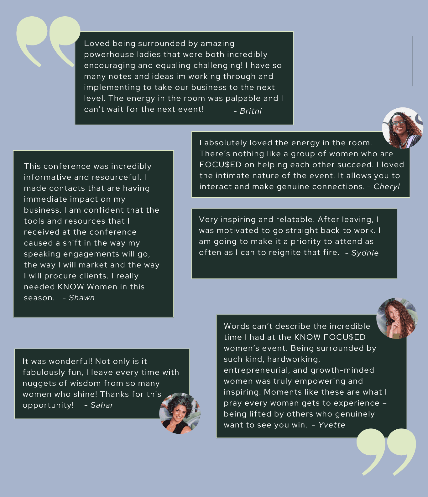 The best part of FOCU$ED was being surrounded by successful business owners who have been there and done it. They shared invaluable insights and nuggets of wisdom that I can use to become a successful business owner myself.